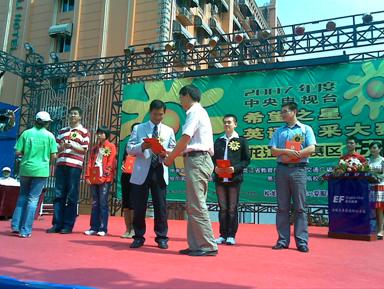 本次“希望之星”英语风采大赛黑龙江赛区比赛开始于4月21日,在参加大学成人组比赛的近千人中,李志贵老师一路过关斩将,经过初赛、复赛和预选赛,闯入全省总决赛。在决赛中,李志贵老师以标准的发音、流畅的表达和出色的临场发挥,彻底征服了评委和现场观众,获得97.2分的全场最高分,赢得冠军。