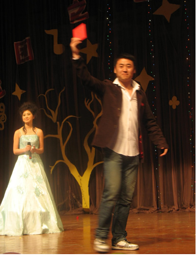 爱心社邀请到了与成龙同台演出过的爱心大使刘莹,她对爱心社的工作给予了充分的肯定并希望爱心社能继续把商大学子的爱心撒向社会各个需要爱的角落。最后刘莹与爱心社的所有成员演唱了歌曲《让世界充满爱》,温馨的场面感染着在场的每一位观众。武术协会表演了双截棍、太极剑、长拳等精彩的武术节目,口才协会与书法协会联合表演了“模拟辩论赛”,创业者协会编排了寓意深刻的话剧,啦啦操表演协会为大家进行了活力四射的啦啦操表演。