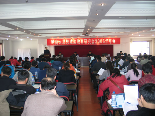 12月29日下午,我校在新校区行政楼6楼会议室召开了思想政治教育研究会2006年年会。校党委书记刘北林同志作重要讲话,校纪委书记黄洁同志主持会议,副校长王德章、刘雪松同志在主席台就座。校思想政治教育研究会全体成员、教学督导室和学生工作督导室成员、全体学工办人员、“思政课”全体教师参加了会议。