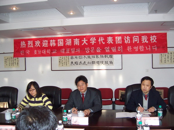 2006年12月26--28日,应国际合作处邀请,韩国湖南大学企划处处长朴相澈、韩中交流中心主任李廷植等一行3人,对我校进行了友好访问。