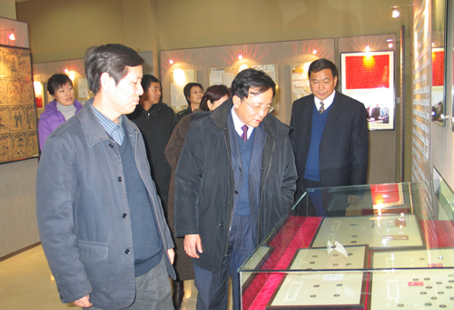 省文明办主任陈永芳在学校领导陪同下参观校史展