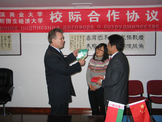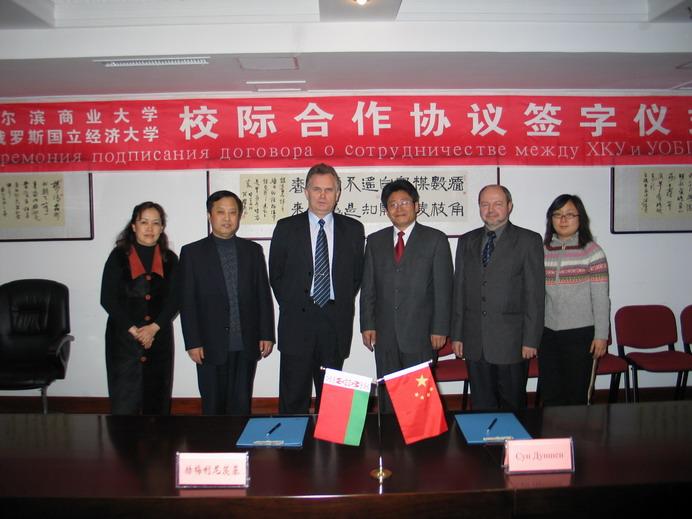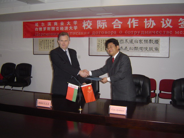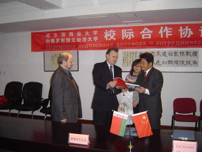 2006年12月14--16日,应国际合作处邀请,白俄罗斯国立经济大学副校长赫梅利尼茨基V·N教授和国际合作处处长波瓦利亚耶夫A·A教授一行2人来我校访问。校长助理孙东生教授会见了代表团一行,并代表学校与该校签署了校际合作协议。
