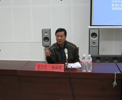 2006年11月22日晚,由研究生经济学会主办的“校长论坛”迎来了第二位嘉宾——黑龙江省经济管理干部学院院长、中共中央党校客座教授、黑龙江省科顾委宏观经济专家组组长陈永昌教授。在我校图书馆一楼报告厅,陈院长为在场师生作了一场题为“我国经济体制改革的回顾与展望”的精彩讲座。参加本次论坛的有经济学院副院长郭振教授、党总支副书记韩平教授、会计学院张凤元老师以及哈尔滨工程大学的老师,我校150余名研究生和本科生聆听了本次报告。