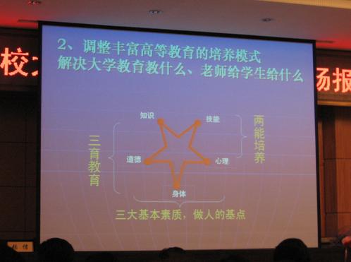 报告会上,黑龙江省经济管理干部学院院长陈永昌教授做了《构建和谐校园——加强大学生心理健康教育》的专题报告。报告从研究心理问题的重要性和紧迫性、大学生心理疾病的表现及其原因、创新教育理念和培养方式、培养健全大学生人格等四方面对当前大学生的心理和行为进行了分析,并总结提炼了“一个自信、两个修养(理论修养和性格修养)、三个面对(面对社会、别人、自己)、四个学会(学会激励、学会沟通、学会理解、学会感恩)、五个方法(以理服人、以才昭人、以情感人、以德聚人、以身正人)”“1、2、3、4、5”的心理健康教育的钥匙。本次报告会对加强我省高校大学生的心理健康教育,保障大学生心理的健康发展具有积极的作用。