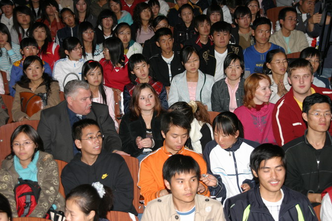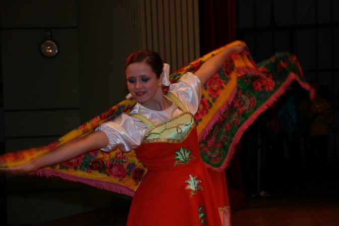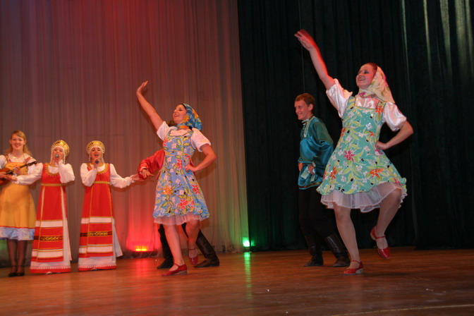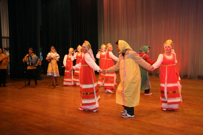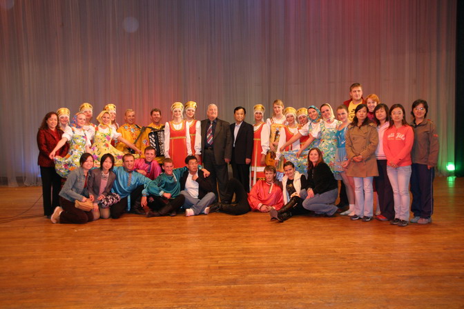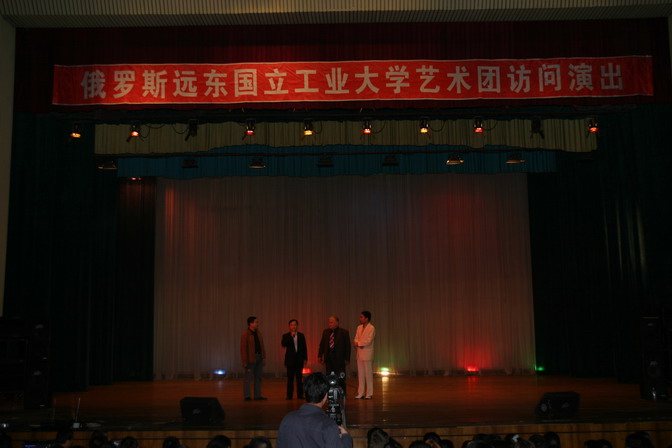 2006年10月9日,应国际合作处邀请,俄罗斯远东国立工业大学艺术团来我校访问演出。演出开始前,国际合作处处长刘龙洋和艺术团领队,俄远东国立工业大学青年中心主任夫亚切斯拉夫﹒索拉莫诺索夫分别发表了热情洋溢的讲话。一曲由8名俄罗斯女生演唱的《莫斯科郊外的晚上》拉开了演出的序幕,接下来表演的俄罗斯民族风格浓郁的歌舞赢得了观众的阵阵掌声。表演中俄罗斯演员走下舞台,邀请我校学生上台共同表演,将演出氛围推向高潮,整个礼堂已经是中俄大学生友谊的海洋,演员观众都沉浸在欢乐之中。演出结束后,同学们纷纷上台与演员合影留念,并有部分同学与演员互留电话或E-mail地址,以便开展进一步交往。