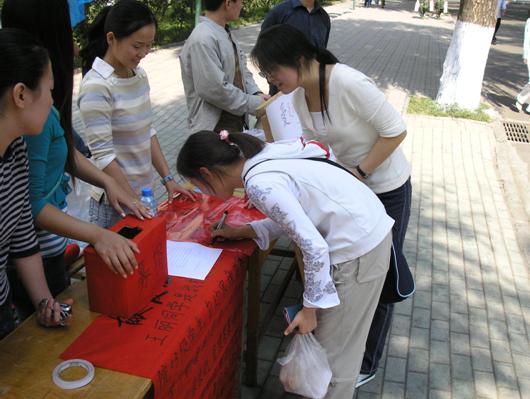 9月16日,在保卫处、团委的帮助下,物流学院在商大南区学生1栋宿舍门前开展了为王丽同学募捐的活动。许多同学在得知这一消息之后,纷纷慷慨解囊。很多同学还在留言册上祝福王丽的母亲早日康复。“现代物流学会”、“爱心社”“大学生传媒中心”等学生组织和同学也加入了宣传募捐的行列中。校广播站还利用中午的时间专门为捐款活动作宣传,《爱的奉献》在学校中反复回响,学校内一时成了奉献爱心的海洋。许多学校的商户也纷纷为王丽捐款,表达自己的一份心意。学校的外国留学生,也纷纷出资出力。在场的每一个人都感受到了爱的温暖。这次活动真实地体现了我们商大人善良、互助、友爱的美好品德。