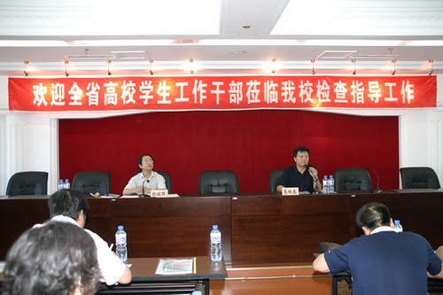 在交流会上,我校党委副书记、副校长杨铭铎教授代表学校作了发言,他首先向全省各高校的同仁表示欢迎,对省委高校工委和省教育厅多年来对商大的指导和支持表示感谢。然后,杨书记从学生工作“为什么”要进宿舍、向宿舍“进什么”、“怎么进”、“四进宿舍”的成效和工作体会等五个方面向与会同志简要介绍了我校的做法和经验。在听取了一个小时的汇报后,高铁春副处长发表了即席讲话。他说,哈商大学生工作的理念、机制和效果都是值得肯定的。学生工作“四进宿舍”、ISO9000管理思想在学生工作中应用的研究和实践等做法,都体现了创新精神,都是努力的方向,都是应该推广的成功经验。哈商大学生工作队伍是一个学者型、研究型、专家型的群体。他们在学生工作模式等方面的创新和经验,说明他们是有胆识的、有魄力的。希望各高校深入学习商大的经验,通过艰苦努力,完成好新“三进”任务。也希望商大给前来学习的院校提供便利。