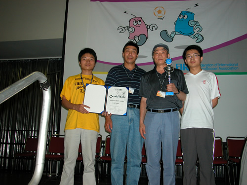 由国际机器人足球联盟(FIRA)举办的2006机器人足球世界杯大赛于六月三十日至七月四日在德国多特蒙德市举行,来自21个国家的大学和科研院所共计83个代表队参加了比赛。哈尔滨商业大学机器人足球队(WillWing)在闫泽生、张伟教授带领下代表中国参加SimuroSot仿真项目比赛,经过4天激烈角逐,夺得本届机器人足球世界杯大赛亚军。张伟教授还在FIRA年会发表题为“足球机器人运动控制模型”论文,并被推举担任本届世界杯竞赛委员会副主席。