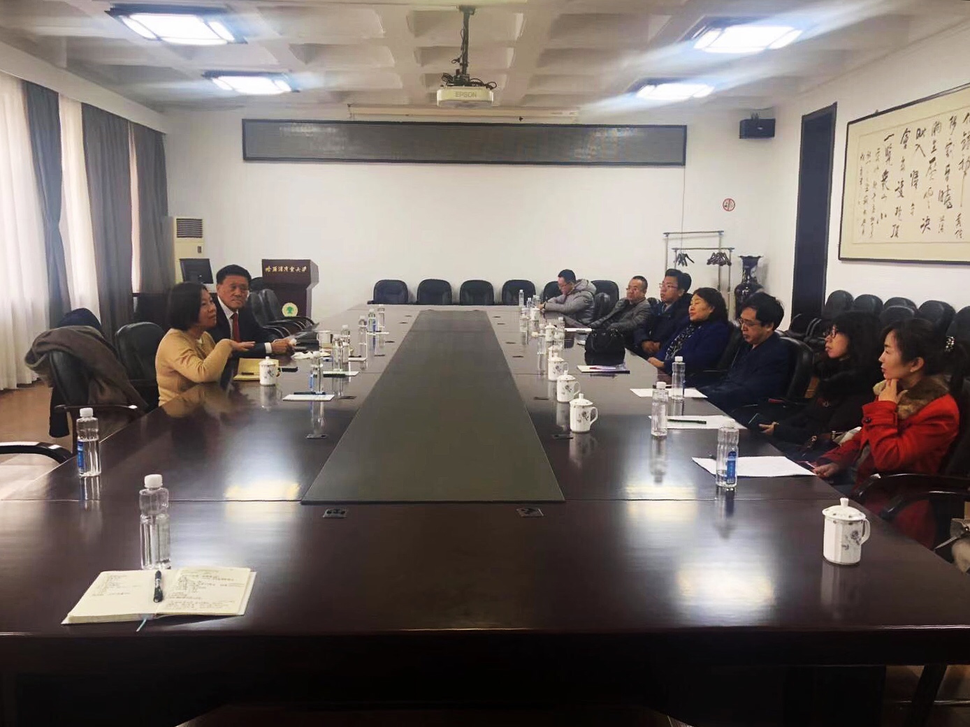 11月9日下午,我校在南校区主楼213会议室举办哈尔滨商业大学——碧桂园集团研发合作洽谈会。黑龙江省人民政府参事韩贵清、碧桂园集团代表叶毅敏、我校校长郑秋鹛出席洽谈会,我校食品工程学院、旅游烹饪学院、药学院、药物工程研究中心的领导和教师代表参加会议。校长郑秋鹛主持洽谈会。