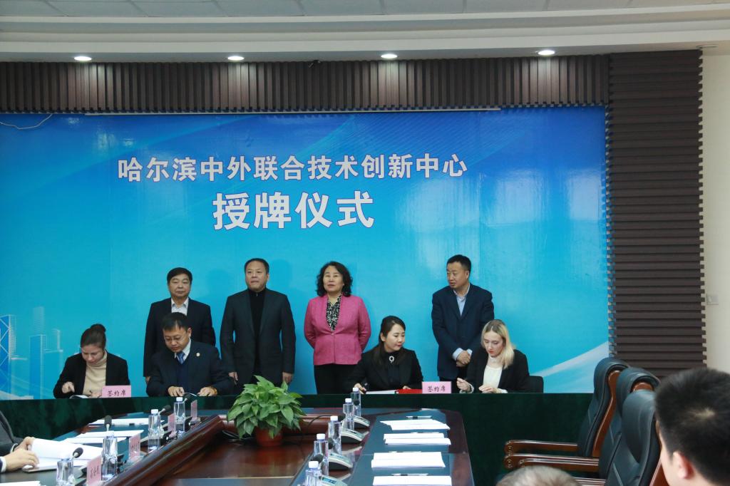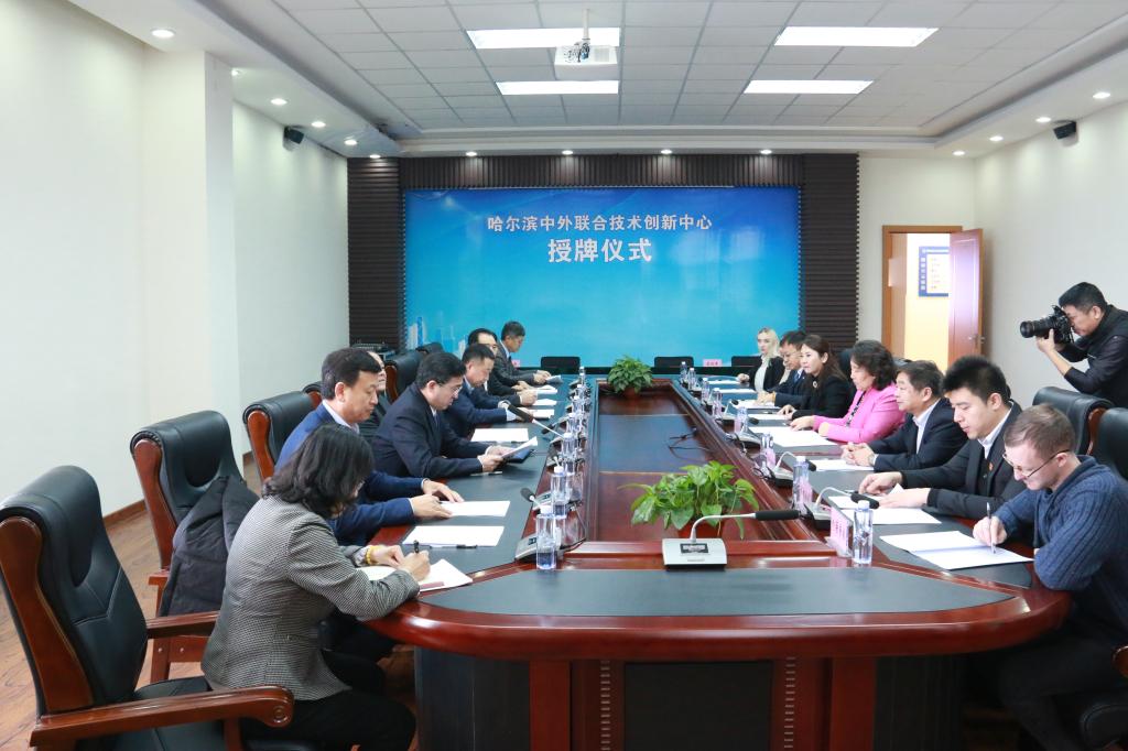 12月27日,由哈尔滨市发展和改革委员会牵头组织,哈尔滨市政府办公厅具体协调安排的“哈尔滨中外联合技术创新中心授牌仪式”在黑龙江省工业技术研究院举行。哈尔滨市委副书记、市长孙喆,哈尔滨市政府副秘书长、市政府办公厅主任高会民,我校校长郑秋鹛等有关领导出席授牌仪式。市发改委主任栾志成主持授牌仪式。