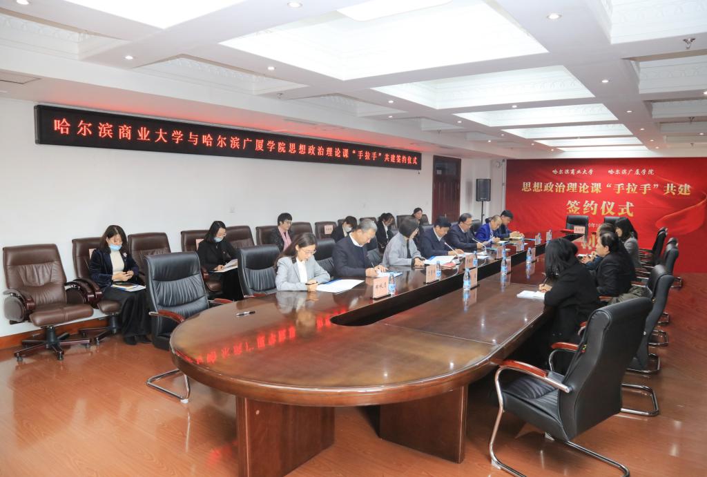 我校与哈尔滨广厦学院思政课“手拉手”共建签约,标志着双方合作迈上了新台阶,双方将进一步完善沟通机制,细化合作内容、方式和途径,在集体备课、课程育人、资源共享、教研活动、教师交流等重点任务上协同发力,持续开展全方位、立体化的深度合作,努力推动形成校际联动“大思政”协同互动格局,发挥思政课在铸魂育人、立德树人教育体系中的“压舱石”作用。此次思政课“手拉手”共建活动,是我校进一步探索深化新时代思政课改革创新的又一项真招实举,我校将积极推进各项合作共建工作落地落实落细,发挥示范引领和辐射带动作用,为深化全省学校思政课改革创新做出贡献。