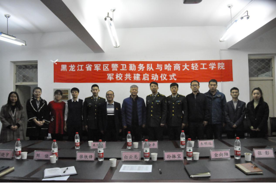 近日,轻工学院与黑龙江省军区警卫勤务队举行军校共建启动仪式。省军区警卫勤务队队长、通信中队中队长、警卫中队中队长一行三人,我校学生工作部部长白云龙,轻工学院党委书记孙振宝、党委副书记张铁锋、副院长金向阳出席共建仪式,轻工学院全体辅导员参加共建仪式。张铁锋主持启动仪式。