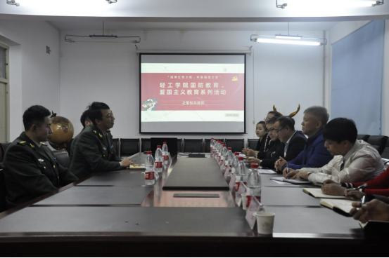白云龙就我校国防教育工作开展情况进行介绍。白云龙指出,作为国防教育特色学校,我校充分利用学生军训、军事理论课教学、大学生征兵入伍等环节,教育引导学生树立正确国防意识,增强国防观念,培养坚强意志,锤炼优秀品格。学校武装部将为军校共建活动提供平台和支撑,以轻工学院作为共建试点,在实施过程中采取试点先行、形成示范、梳理总结、逐步推广的方式,围绕共建共育目标任务,不断巩固共建成果,把共建活动进一步推向深入。