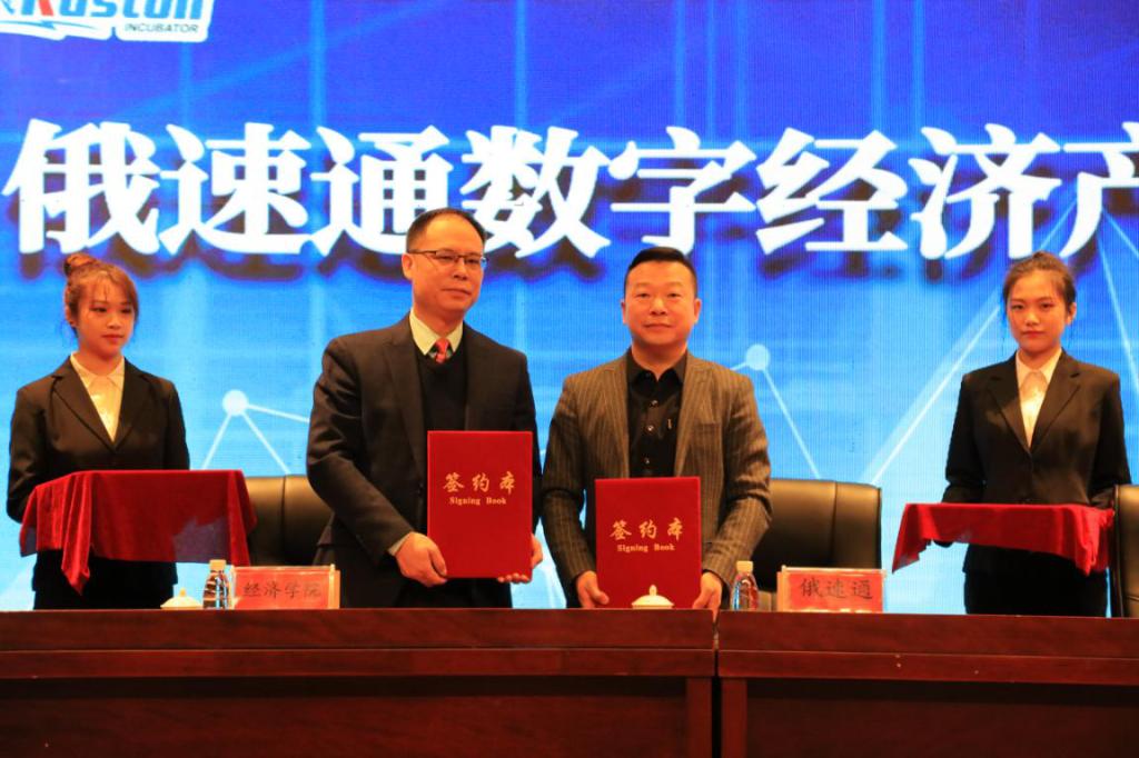 经济学院院长韩平与俄速通集团总裁刘晓明签署《校企共建俄速通数字经济产业学院合作协议》,明确“资源共享、优势互补、责任共担、合作共赢”的合作原则,确立长期、紧密的合作共建关系,推动产教融合与校企合作。