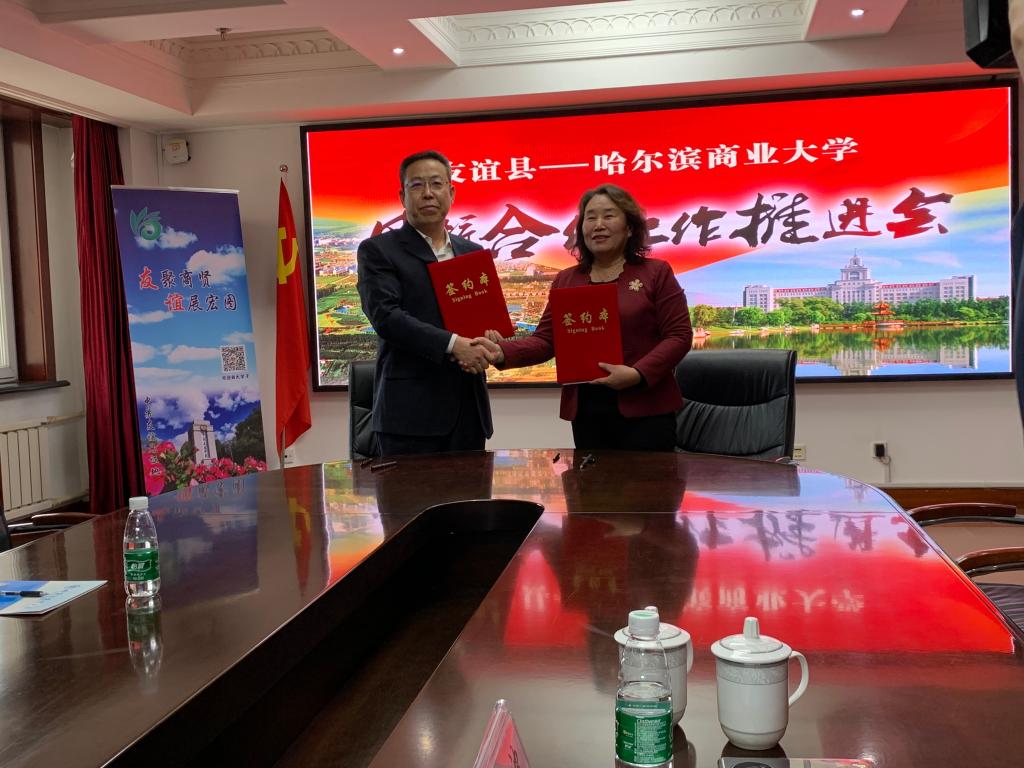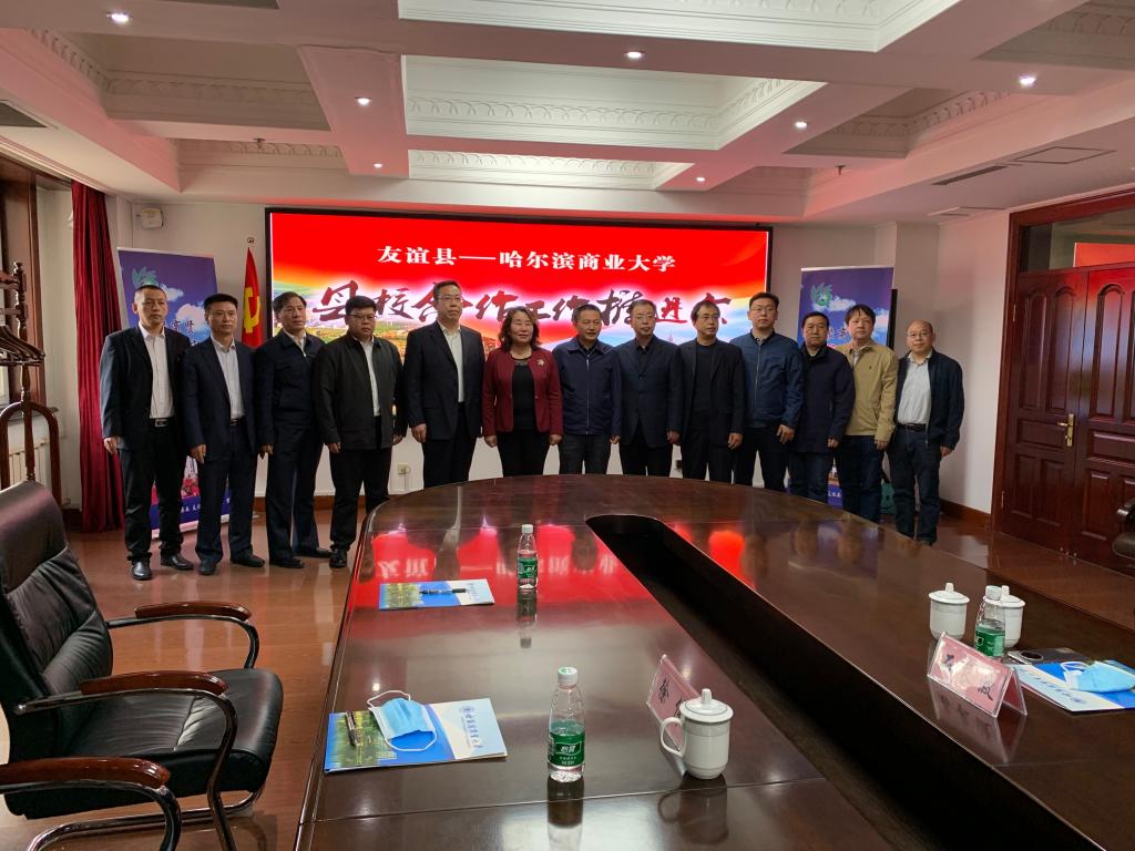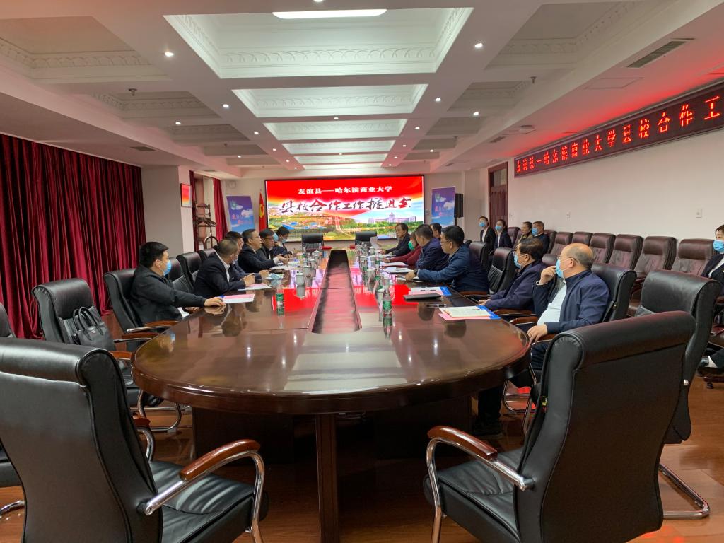 在县校合作工作推进会上,刘少坤表示,希望在科研成果转化、文化旅游深层次开发、农副产品精深加工、电商平台建设及人才培养等方面得到哈商大的大力支持,助力友谊经济社会高质量发展,友谊县将不断强化合作措施,提供有利于合作的支撑服务,推动友谊县和哈商大合作、互利、双赢。郑秋鹛指出,本次合作推进会的召开标志着哈尔滨商业大学与友谊县的合作再上新台阶,我校将立足学校办学特色和优势,对接友谊县发展实际需求,全面推进科技成果在友谊县落地转化,全力做好支撑服务,助力友谊县经济发展,不断开创县校合作新局面,推动双方合作持续深化,再结新果,实现共赢,为龙江全面振兴全方位振兴作出更大贡献。双方就合作项目进行交流洽谈,围绕县校合作前期成果、当前合作进展和下一步合作目标与方向等进行深度探讨。