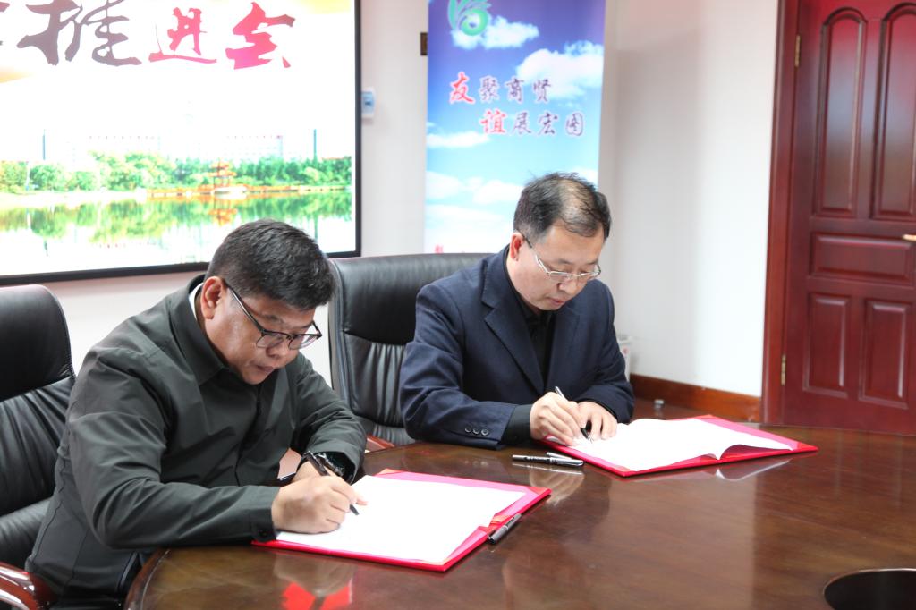 刘少坤书记与郑秋鹛校长签订深化合作框架协议。友谊县委常委、组织部部长赵大勇与我校党委常委、组织部部长刘文军签订人才战略合作协议。