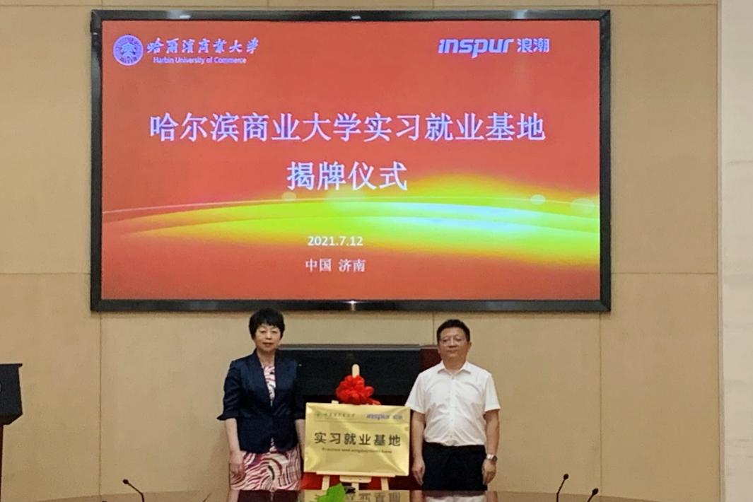 7月12日下午,哈尔滨商业大学会计学院实习就业基地揭牌仪式在山东省济南市浪潮集团有限公司举行。会计学院院长张劲松教授、副院长梁运吉教授、浪潮铸远副总经理张明、浪潮铸远教师发展研究院副院长秦丽等参加揭牌仪式。