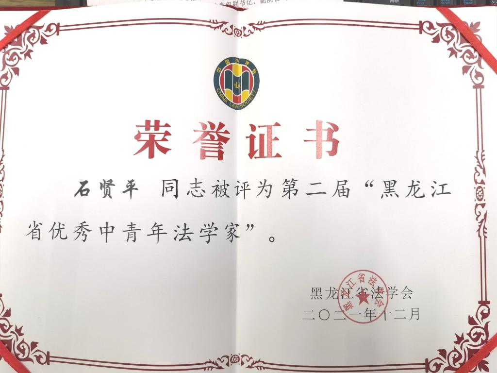 法学院石贤平获评第二届“黑龙江省优秀中青年法学家”,是对商大法学专业教师为新时代社会主义法治发展提供法学研究成果和积极参与地方法治建设,把法学研究成果书写在祖国大地上的肯定。下一步,法学院将进一步加强学科专业建设,提升人才培养质量,致力于科学研究与社会服务,在服务全省经济社会发展中发挥自身优势,为建设法治黑龙江作出新贡献。