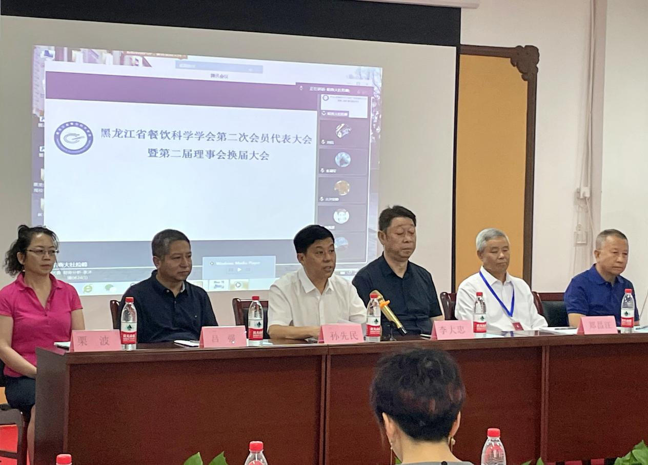 8月13日下午,黑龙江省餐饮科学学会第二次会员代表大会暨理事会换届大会在哈尔滨龙商数字科技创新基地召开。我校党委书记孙先民教授、黑龙江省直机关党工委原副书记李大忠、黑龙江省科学技术协会学会学术部部长吕强、黑龙江省商务厅港澳台经贸合作交流处和生活服务管理处处长栗波、黑龙江龙商数字经济科技有限公司总经理张小航、大连盐化集团哈尔滨分公司总经理史永贵、黑龙江珍选食品有限公司董事长王永忠、哈尔滨大众肉联制品有限公司营销总监董莉芬、黑龙江龙厨食品科技有限公司高文玺总经理等领导、企业家和来自全省各地的115名代表通过线下和线上出席大会。