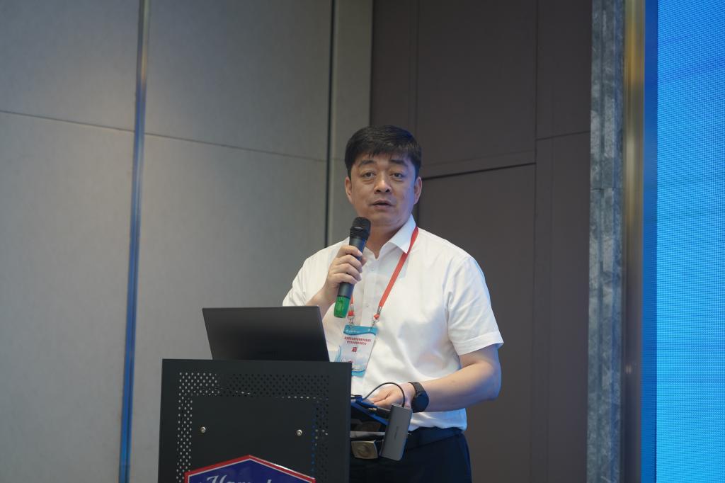 华中科技大学出版社医学分社社长陈鹏致辞。陈鹏回顾了2018年在杨铭铎教授的指导下策划的全国餐饮职业教育教学指导委员会重点课题“基于烹饪专业人才培养目标的中高职课程体系与教材开发研究”所取得的成就,认为哈尔滨商业大学承担的教育部第二批国家级职业教育教师教学创新团队烹饪与餐饮管理专业项目将是一项填补空白、引领全国的前瞻性项目。他表示,华中科技大学出版社已正式立项以上述课题为背景的“高等职业本科教育‘十四五’规划烹饪与餐饮管理专业新形态一体化系列教材”的建设,出版社将配备高素质编辑团队,与大家共同努力,为餐饮职业本科教育的发展贡献绵薄之力。