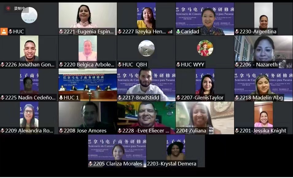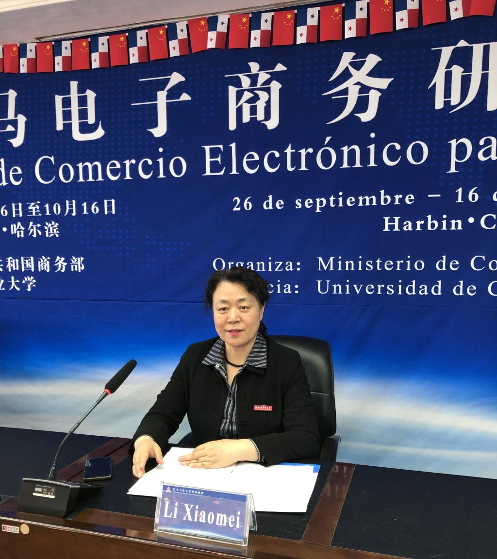 李晓梅首先介绍了我国对外援助人力资源培训项目重要意义及我校援外工作,并指出中国在致力于自身发展的同时,向广大发展中国家提供了力所能及的经济和技术援助,加大在人力资源开发领域对外交流与合作。希望通过本期研修班的学习交流,让中国和巴拿马电子商务领域管理人员相聚在云端,发展经验互鉴,发展理念互通,互利合作共赢,所有学员能够成为中巴友谊的桥梁和友好使者。