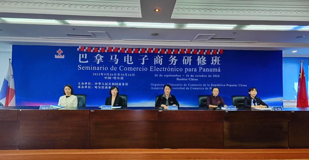 9月26日上午,由商务部主办、哈尔滨商业大学承办的“巴拿马电子商务研修班”线上开班仪式在我校行政楼612会议室举行。我校副校长李晓梅出席开班仪式,国际教育学院院长赵春雨、经济学院副院长杨慧瀛、国际教育学院副院长刘颖及相关教师和31名巴拿马学员参加线下线上开班仪式。赵春雨主持开班仪式。