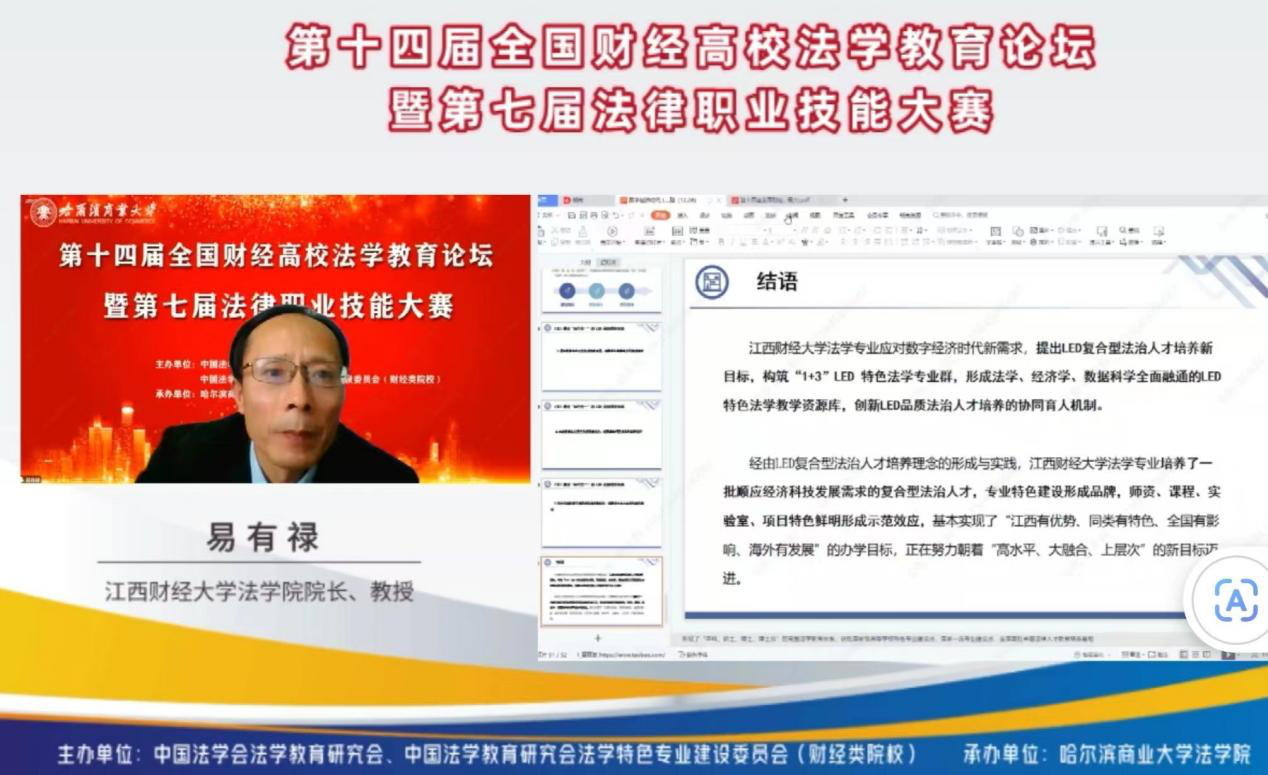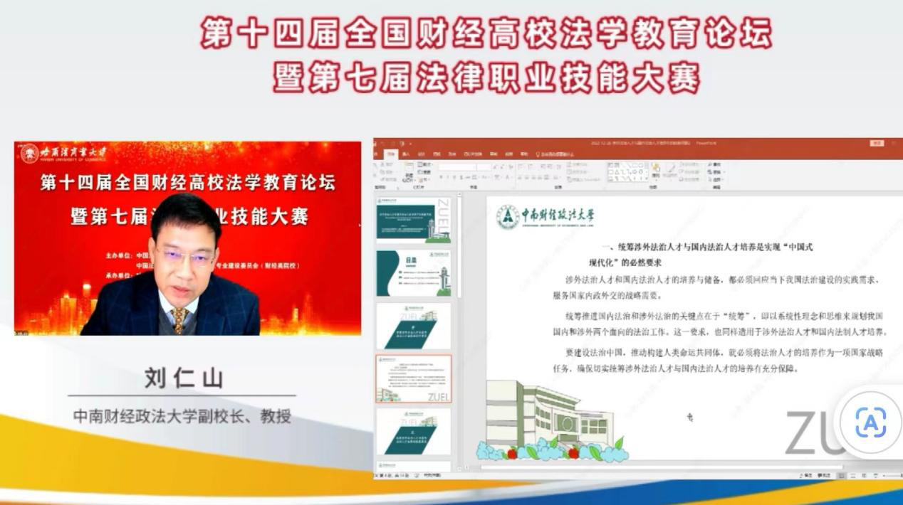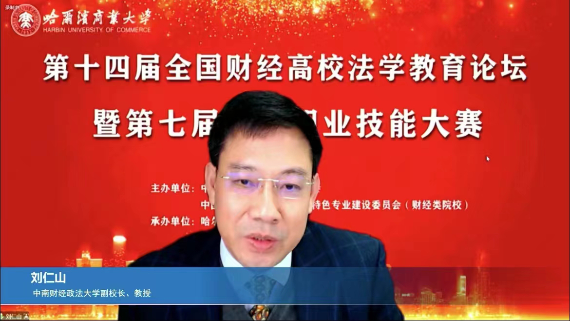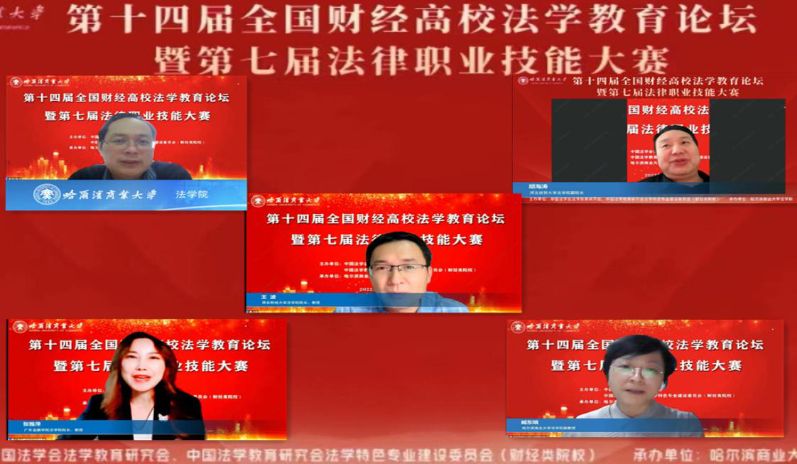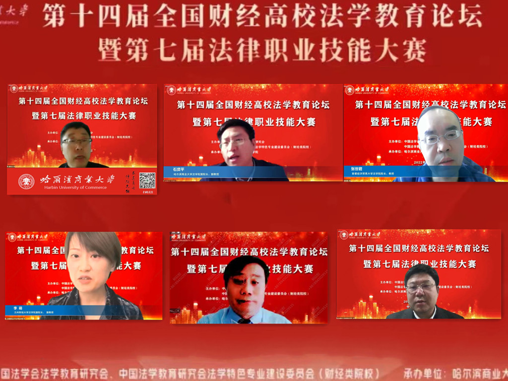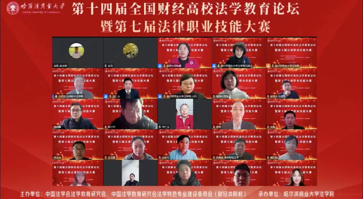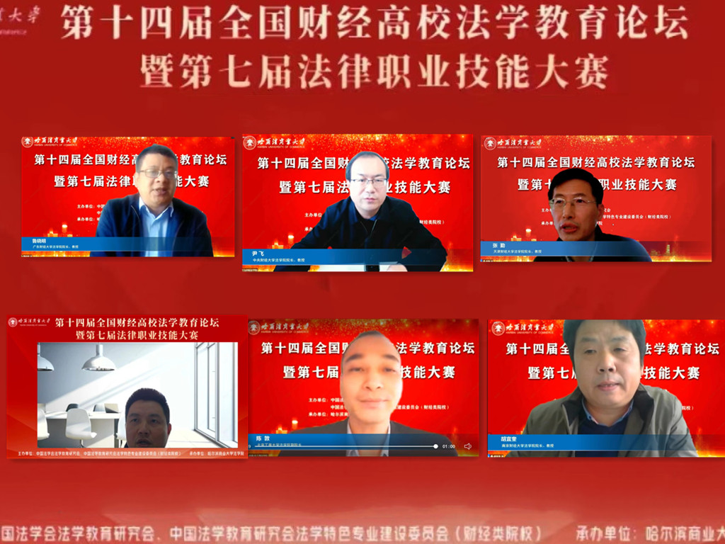 12月28日,由中国法学会法学教育研究会、中国法学教育研究会法学特色专业建设委员会(财经类院校)主办,我校法学院承办的第十四届全国财经高校法学教育论坛暨第七届法律职业技能大赛在线上成功举办。本次论坛包括开幕式、主旨报告、分论坛和闭幕式四个单元。中国法学教育研究会法学特色专业建设委员会(财经类院校)主任委员、中南财经政法大学副校长刘仁山教授;中国法学教育研究会法学特色专业建设委员会(财经类院校)副主任委员、山西财经大学法学院马跃进教授;中国法学教育研究会法学特色专业建设委员会(财经类院校)副主任委员、上海政法学院副院长郑少华教授;中南财经政法大学法学院院长陈柏峰教授;中央财经大学法学院院长尹飞教授;江西财经大学法学院院长易有禄教授;北京工商大学法学院原院长李仁玉教授;东北财经大学法学院院长邹世允教授;北京物资学院法学院副院长吴长军教授;吉林财经大学法学院院长仇晓光教授;首都经济贸易大学法学院院长张世君教授;兰州财经大学法学院副院长李萌副教授;天津财经大学法学院院长张勤教授;广东财经大学法学院院长鲁晓明教授;北京工商大学法学院副院长(主持工作)陈敦教授;南京财经大学法学院院长胡宜奎教授;贵州财经大学法学院院长陈玉梅教授;安徽财经大学法学院院长张卫彬教授;西安财经大学法学院院长王波教授;广东金融学院法学院院长张雅萍教授;中南财经政法大学法学院副院长李俊教授;山东工商学院法学院副院长(主持工作)武善学副教授;云南财经大学法学院副院长(主持工作)石现明教授;河北经贸大学法学院副院长(主持工作)胡海涛教授等20余所财经高校的专家学者以及校内外近200名师生参加本次网络论坛,线上累计观看直播人数达近5000人次。
