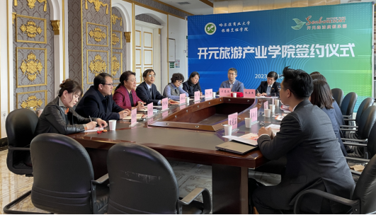 近日,我校旅游烹饪学院与开元森泊度假乐园的产教融合成果——开元旅游产业学院正式成立,签约仪式暨校企合作研讨会在旅游烹饪学院会议室举行。我校副校长李晓梅教授出席会议并致辞,旅游烹饪学院党委书记陶萍教授、国际交流合作处处长金向阳教授、旅游烹饪学院院长石长波教授、旅游烹饪学院党委副书记李晓阳教授、旅游烹饪学院副院长孙静教授、旅游烹饪学院行政秘书朱正杰副教授和刁志波教授;开元森泊集团公司总经理助理兼人力资源总监陈静、莫干山开元森泊度假乐园人力资源总监蒋淑芳、开元森泊集团公司招聘总监单磊、杭州开元森泊度假乐园招聘经理黄静梅、莫干山开元森泊度假乐园招聘经理李冠函,以及我校硕士研究生代表参加会议。