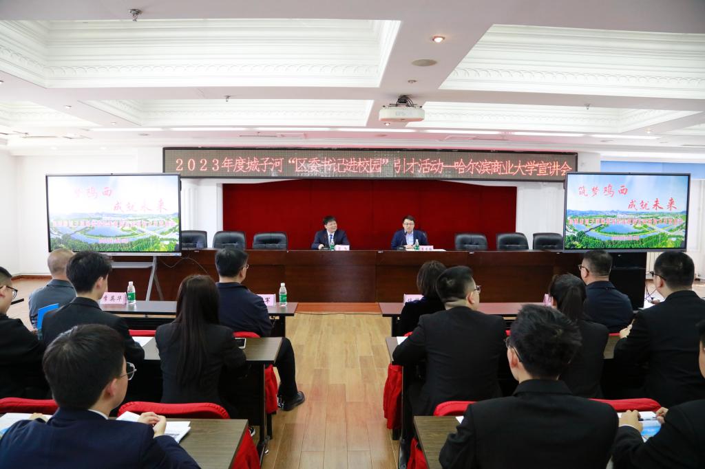 会后,在我校行政楼612会议室举办了2023年度城子河“区委书记进校园”引才活动——哈尔滨商业大学宣讲会。崔本强主持会议。