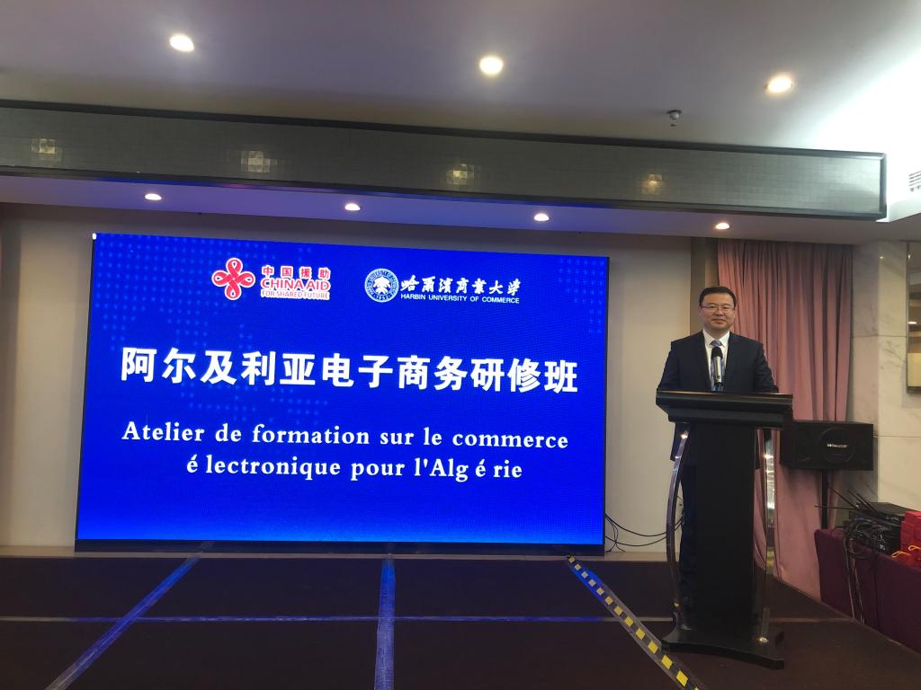 12月28日下午,我校举行“阿尔及利亚电子商务研修班”结业典礼。我校副校长赵大伟、国际教育学院和经济学院教师代表,以及来自阿尔及利亚电子商务研修班的20位参训学员参加典礼。国际教育学院院长金向阳主持结业典礼。