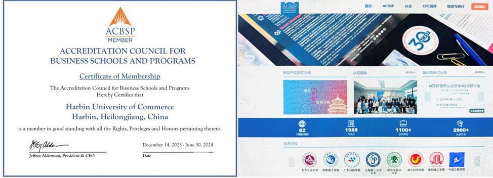 ACBSP是美国商学院认证委员会(Accreditation Council For Business Schools and Programs)的简称。2023年12月14日,哈尔滨商业大学经济学院ACBSP国际认证小组收到ACBSP美国商学院认证委员会的通知,哈尔滨商业大学正式成为ACBSP会员,相关工作已全面启动,学校也因此成为东三省首家进入专业国际认证的教学单位,这是近年来学校在探索和参与专业国际认证工作又一重要的阶段性成果。