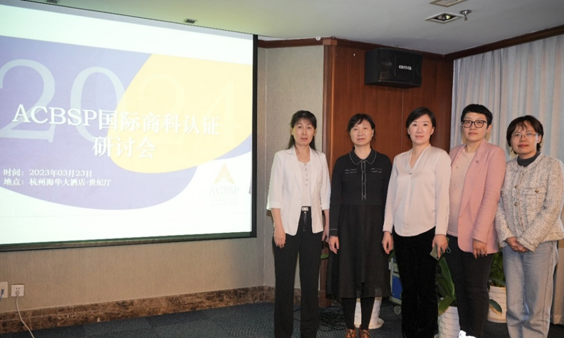 近日,由ACBSP中国办公室主办的ACBSP国际商科认证研讨会在杭州举办,来自全国各地高校近60名认证工作负责人、教学管理者和骨干教师参加培训。会议旨在提升教师的专业水平和认证意识,推动学院商科教育质量迈上新台阶。我校经济学院副院长杨慧瀛教授带领国家一流专业负责人张金萍、张恩英及青年教师王戈、王文卓应邀参加会议。