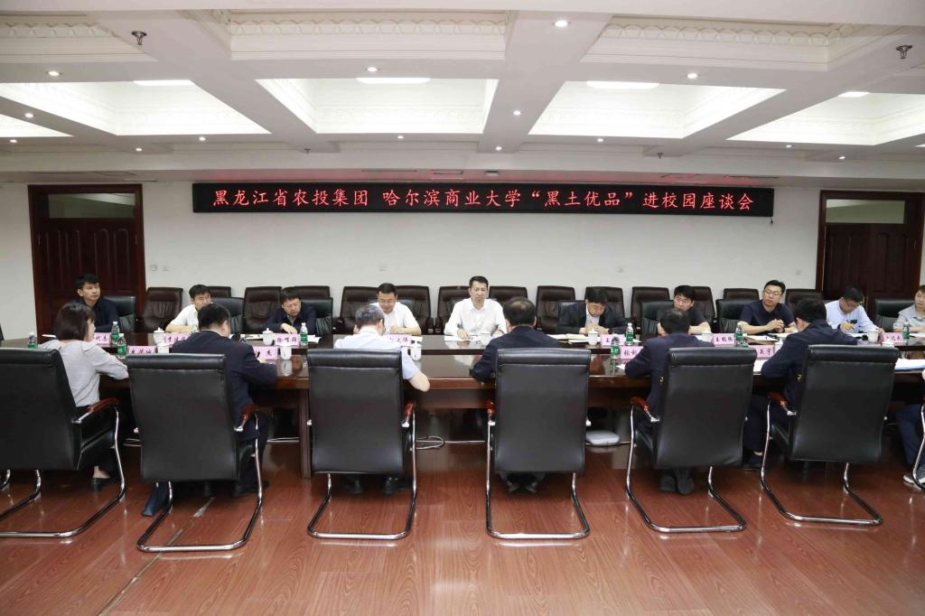 6月13日,哈尔滨商业大学与黑龙江省农投集团“黑土优品”进校园座谈会在我校行政楼3楼会议室举行。农投集团党委书记、董事长常玉春,省教育厅科信处孟凡伟,我校党委书记赵广、副校长王巍、副校长赵大伟出席座谈会。王巍主持会议。