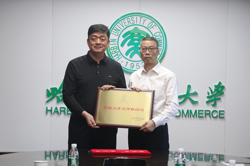 双方共同探讨了人才培养、产学研合作等方面的事宜。随后,温州市与哈尔滨商业大学签订了人才工作联络站协议,并为哈尔滨商业大学授牌。