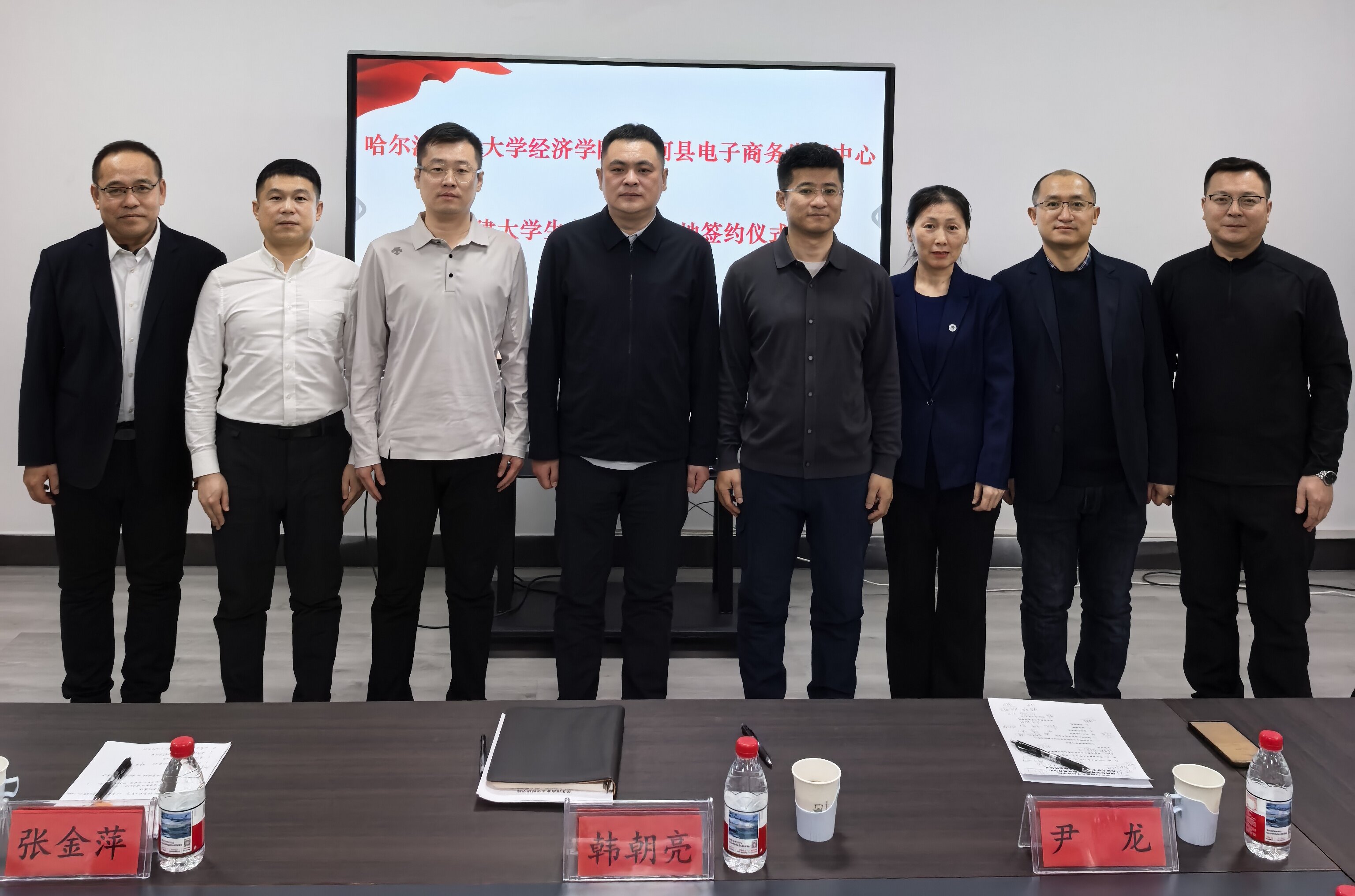 为进一步深化校地合作,共育新商科人才,搭建高校与地方资源共享、优势互补的合作平台,1月15日,经济学院与饶河县举行校地合作暨共建实习实训基地签约揭牌仪式。饶河县副县长辛延平,饶河县电子商务发展中心主任腾华军、外经贸综合服务中心主任吕昭键、职教中心副校长陈德新;我校经济学院党委副书记、院长韩朝亮,国际经济与贸易教研室主任张金萍、数字经济教研室主任尹龙,饶河援边教师卢尚坤参加会议。会议由韩朝亮主持。