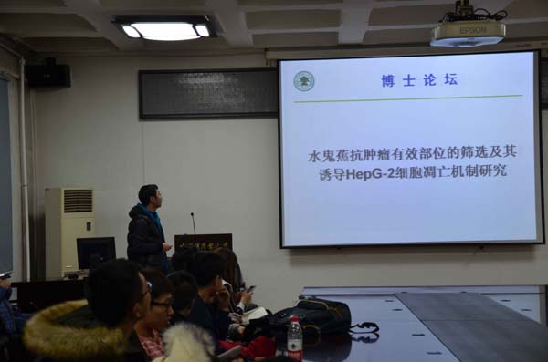 “太阳岛生物医药环境博士·博士后学术论坛”为哈尔滨商业大学第十届学术节的系列活动,哈尔滨商业大学理学院副院长高世勇研究员主持论坛,相关学科负责人、专家、教师、博士后、博士及硕士参加了本次论坛。哈尔滨商业大学理学院汲晨锋博士后做了题目为《昆布多糖诱导人结肠癌Lovo细胞凋亡及多糖硫酸酯抗肿瘤构效关系的研究》的报告,哈尔滨商业大学理学院项峥博士后做了题目为《薏苡附子败酱散的药学研究》的报告,哈尔滨商业大学理学院陈宁博士后做了题目为《水鬼蕉抗肿瘤有效部位的筛选及其诱导HepG-2细胞凋亡机制研究》的报告,报告期间,参加论坛活动的硕士、博士和博士后与报告人围绕报告内容展开了活跃的互动交流,气氛热烈,营造了良好的学术氛围。最后由理学院副院长高世勇研究员主持闭幕式,并对明年的论坛活动提出期待。
