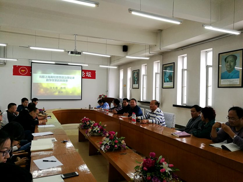 为迎接建校六十五周建庆典,提高思想政治理论课的教育教学水平,8月30日,马克思主义学院邀请上海市思政课教指委委员、上海立信会计金融学院马克思主义学院院长徐光寿教授来学院进行学术讲座和交流。马克思主义学院全体教师参加了交流会。