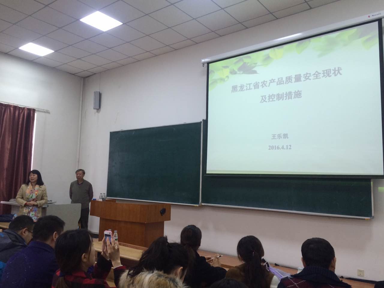 王乐凯研究员以加拿大蔬菜储运为例,介绍了低温冷藏对农药残留的影响。王乐凯研究员讲座风趣幽默,座谈中还对黑龙江省农科院农产品质量安全研究所进行了介绍,并且对我院学生提出了诚挚的邀请,欢迎我院毕业生就职。讲座在欢乐的气氛与热烈的掌声中圆满结束。