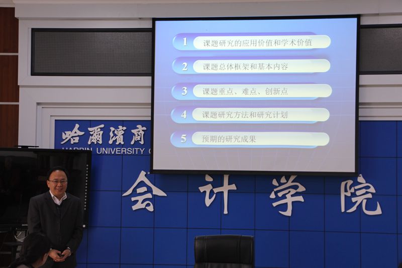 5月5日下午,在会计学院会议室成功举行了国家社科基金三个项目的开题报告会。会议由会计学院副院长博士生导师张劲松教授主持,项目主持人张林教授、毛元青教授和杨忠海博士分别作了汇报。出席此次会议的特邀专家有哈尔滨工程大学博士生导师孟凡生教授,校长助理、科研处处长博士生导师刘晓峰教授,会计学院博士生导师周航教授、博士生导师李兆华教授。哈尔滨工程大学和黑龙江大学的老师及校内部分老师和学生参加了此次报告会。