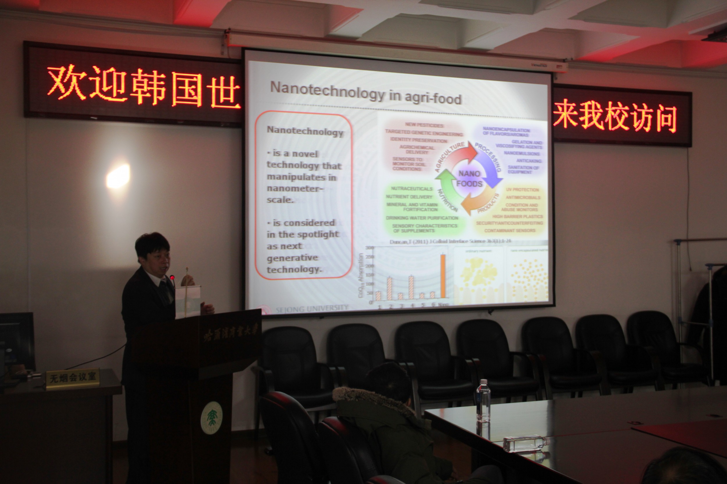 Sanghoon Ko教授还与食品工程学院的广大师生交流了其在功能性食品、食品及饮品加工方面取得的研究进展。Sanghoon Ko教授一行讲座风趣幽默,座谈中还对中韩两国人民的友谊,以及对哈尔滨冬天的魅力表达了衷心的赞美,讲座在欢乐的气氛与热烈的掌声中圆满结束。