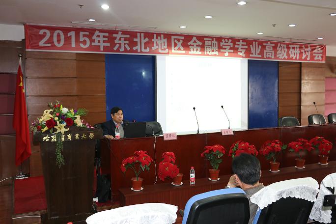 哈尔滨商业大学金融学院院长李国义教授主持会议并作学术演讲