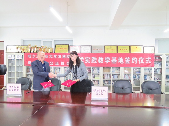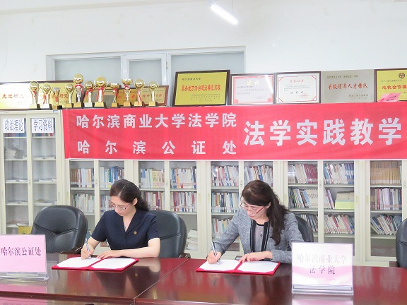 法学院院长石晶玉教授与哈尔滨公证处关艳红副主任签约