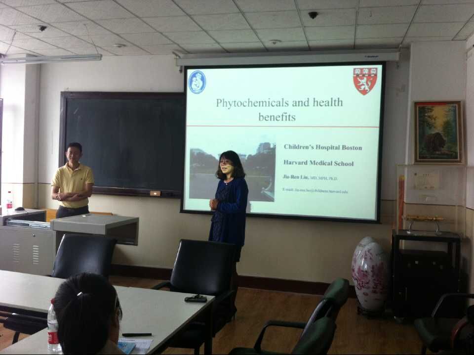 2015年8月31日上午9:00时,哈佛大学医学院刘佳仁博士、助理教授,应食品工程学院邀请,在我校南区食品工程学院会议室为广大青年教师和研究生进行了题为“植物化合物与人体健康”( Phytochemicals and health benefits)的专题学术讲座,报告会由食品工程学院副院长刘颖教授主持。