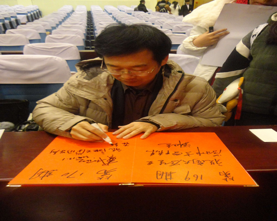 戴老师在“太阳岛讲坛”嘉宾留言簿上签名留念