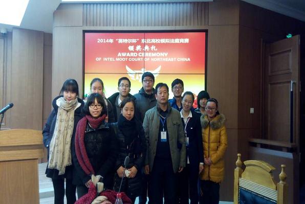 经过一个多月的日夜紧张训练,2014 年12月7日,法学院党总支副书记高勇、指导教师朱凤义共同带领我校法学院10名学生组成的代表队赴长春吉林大学,参加由“英特尔”中国公司,吉林大学法学院、吉林大学卓越法律人才培养教育基地主办的“英特尔杯”东北高校(中文)模拟法庭竞赛。本次赛事包括吉林大学法学院等21所东北地区高校的法学院参赛队伍。