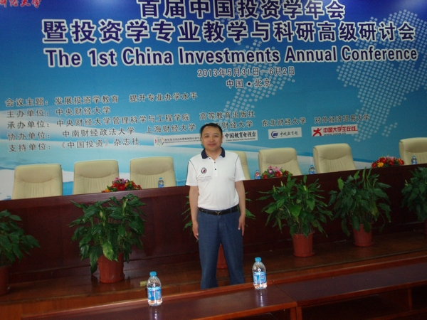 2013年5月31日-6月2日,首届中国投资学年会暨投资学专业教学与科研高级研讨会在中央财经大学召开。会议由中央财经大学主办,中央财经大学管理科学与工程学院、高等教育出版社联合承办,中南财经政法大学、上海财经大学、西南财经大学、东北财经大学、对外经济贸易大学联合协办,《中国投资》杂志社、教育部全国高校教师网络培训中心、中国教育电视台、中国教育报、中国大学生在线作为支持单位。我校金融学院院长李国义教授和投资学教研室负责人庞海峰副教授参加了大会。