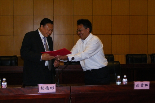 副校长刘雪松教授为杨德彬教授颁发聘书