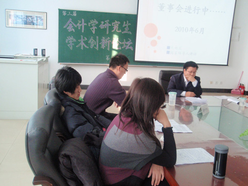 2010年12月24日 上午九点,会计学院第三届“共读一本书”研究生学术创新论坛(第六期)在A区1403教室拉开了帷幕。研究生学院陶萍书记、会计学院张劲松副院长以及徐晶副教授、张明霞副教授、陈旭老师等与2009级、2010级研究生出共同席了本次论坛。