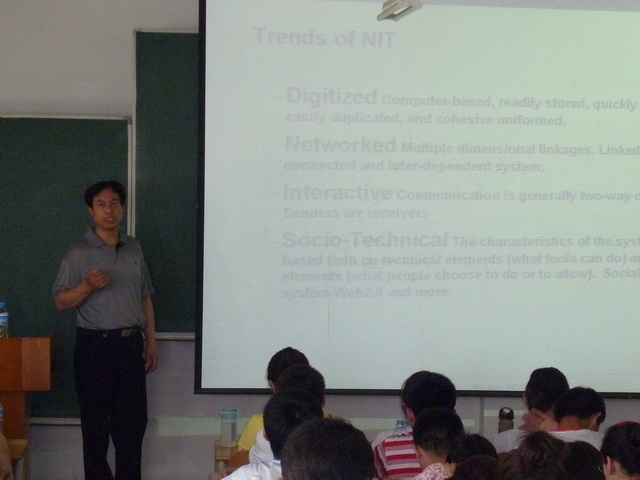 6月11日 下午2点在A区0号楼0310多媒体教室,刘燕权教授为我校师生做了题目为“Next Generation of Information & System Management”的学术报告。计算机学院科研副院长赵志杰教授主持了报告会,计算机专业青年教师、研究生和本科生听取了学术报告会。