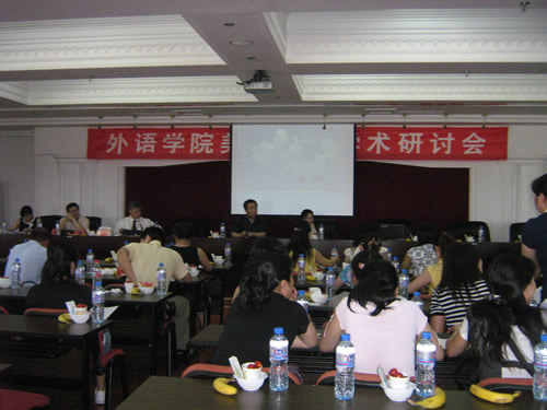 2008年6月25日外语学院举办了以“外国文学的魅力与研究方法”为主题的美国文学学术研讨会。本次会议邀请北京大学外语学院副院长、博士生导师、著名学者刘树森教授担任研讨会主讲。与会的嘉宾还有来自北京化工大学的我校客座教授陈仲利先生。黑龙江大学、哈尔滨师范大学等省内12所高校共派27名代表前来参加研讨会。